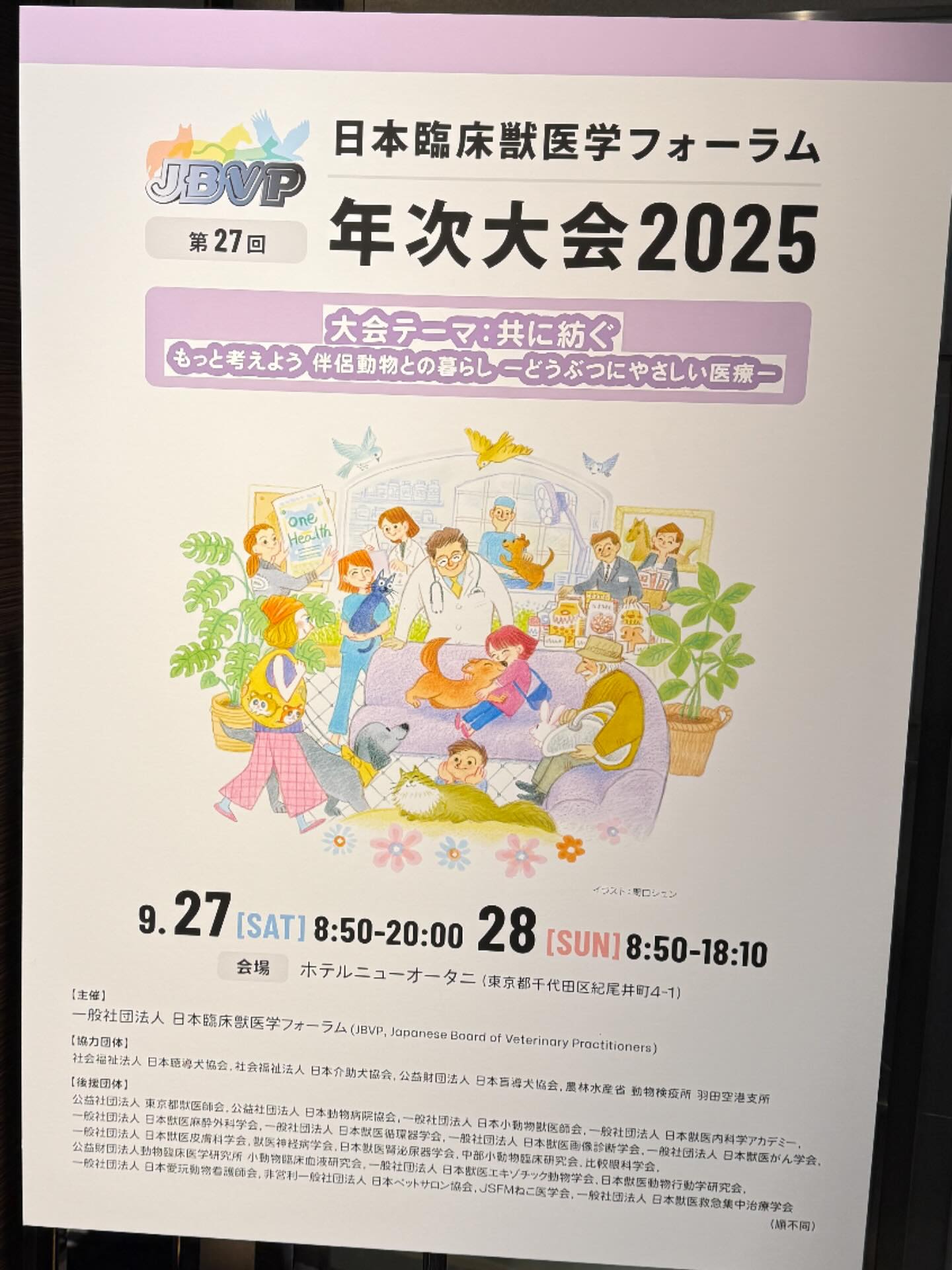 先週末、東京で開催された日本獣医臨床フォーラムに参加してまいりました。毎年この学会には国内外から多くの獣医師や動物看護師が集まり、最新の研究や技術を学ぶことができる貴重な機会です。今年もその熱気と情熱に触れ、私たちも大いに刺激を受けました。