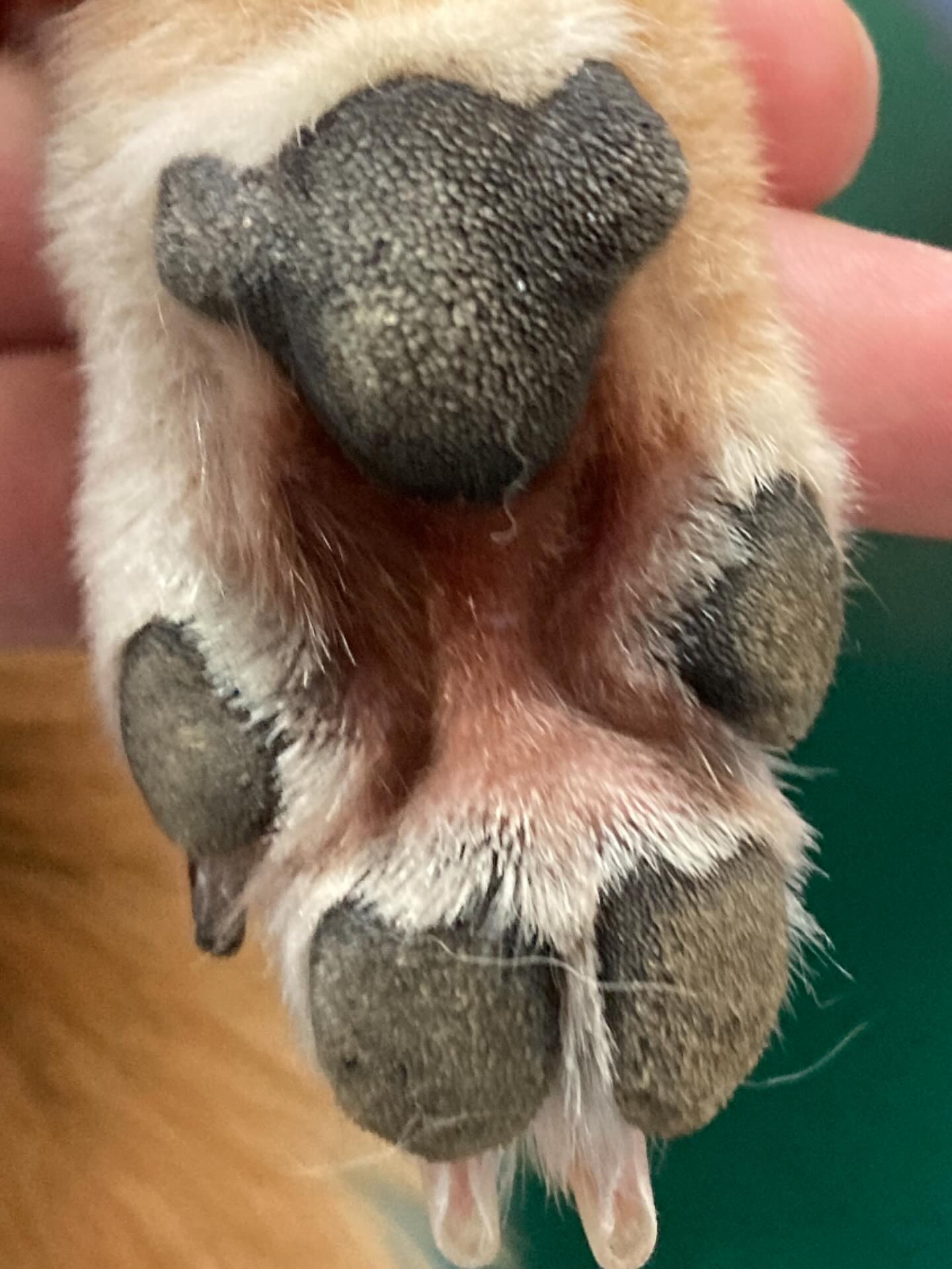 舐めていないと思っても、赤みがあれば注意が必要です。私たちのクリニックでは、身体検査の際に肉球もチェックして健康管理に努めています。